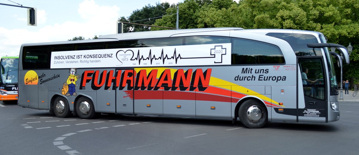 Mercedes-Benz Travego von Omnibus- und Reiseverkehr Laschke GmbH aus Euskirchen, Nordrhein-Westfalen bei der Bus Demo in Berlin am 17.06.2020. Lisa S.