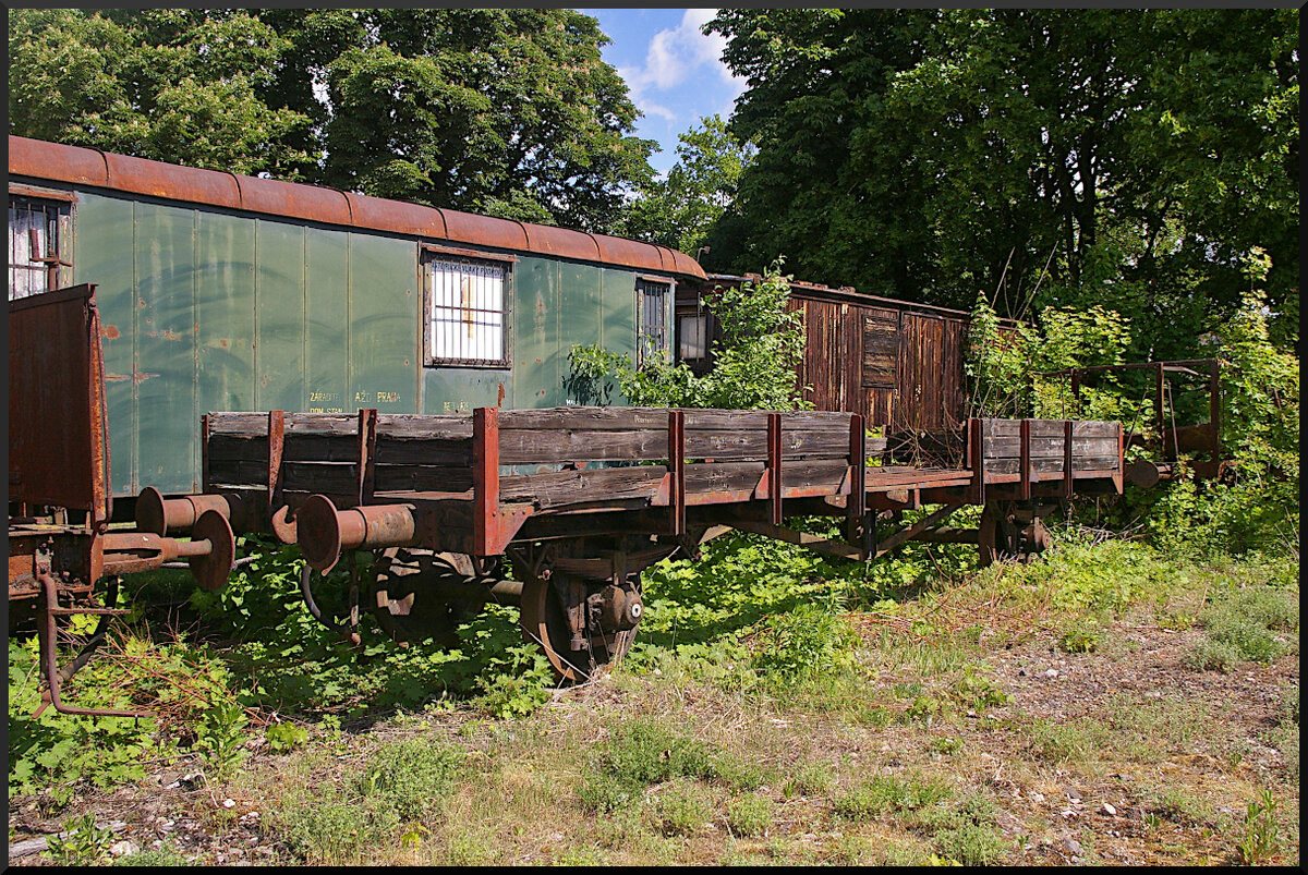 Der Niederbordwagen ČSD N 3-22621 stand an der Drehscheibe im Eisenbahnmuseum Jaroměř. Gebaut wurde er von Ringhoffer Praher im Jahr 1913.