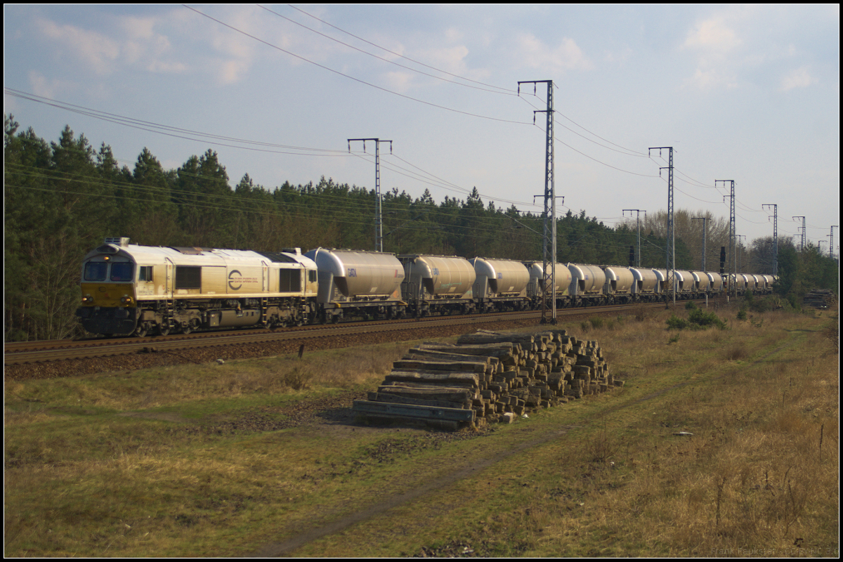 Mit einem Super Self Discharging Train (SSDT) kam HHPI 29006 / 266 005-8 am 16.04.2019 durch die Berliner Wuhlheide gefahren. Die Lok ist seit 06.2016 Eigentum von Beacon Rail Leasing S.à r.l., Luxembourg.