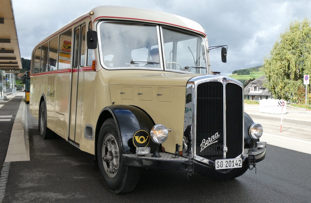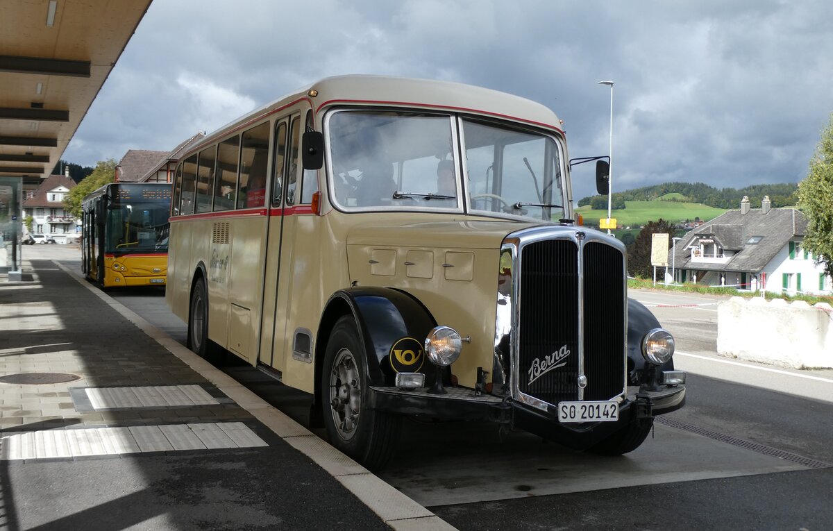 (280'990) - Steiner, Messen - SO 20'142 - Berna/Hess (ex Bärtschi, Biberen) am 5. Oktober 2025 beim Bahnhof Langnau (Detailaufnahme - 702'130,3 Kilometer)
