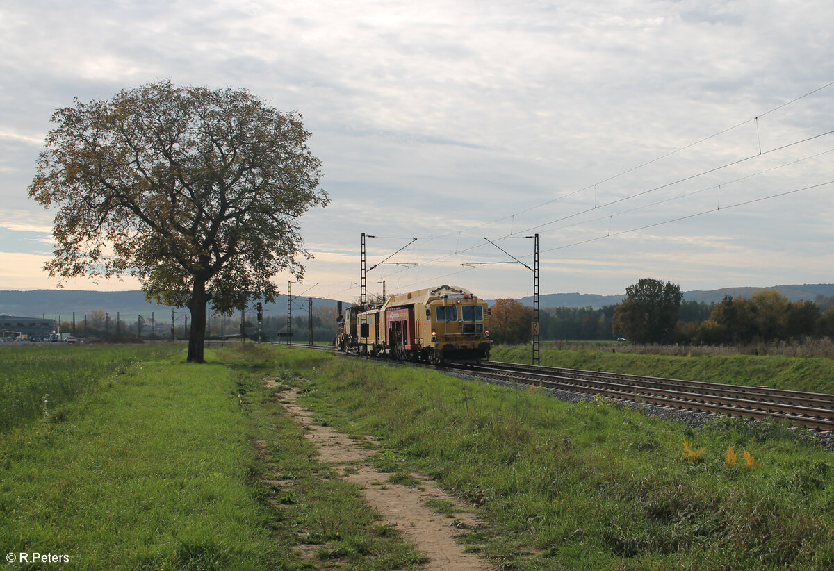218 392-9 schiebt den Fahrwegmesszug der DB Netz und Instandsetztung Systemtechnik von Nürnberg nach Hof bei Oberteich. 15.04.14
