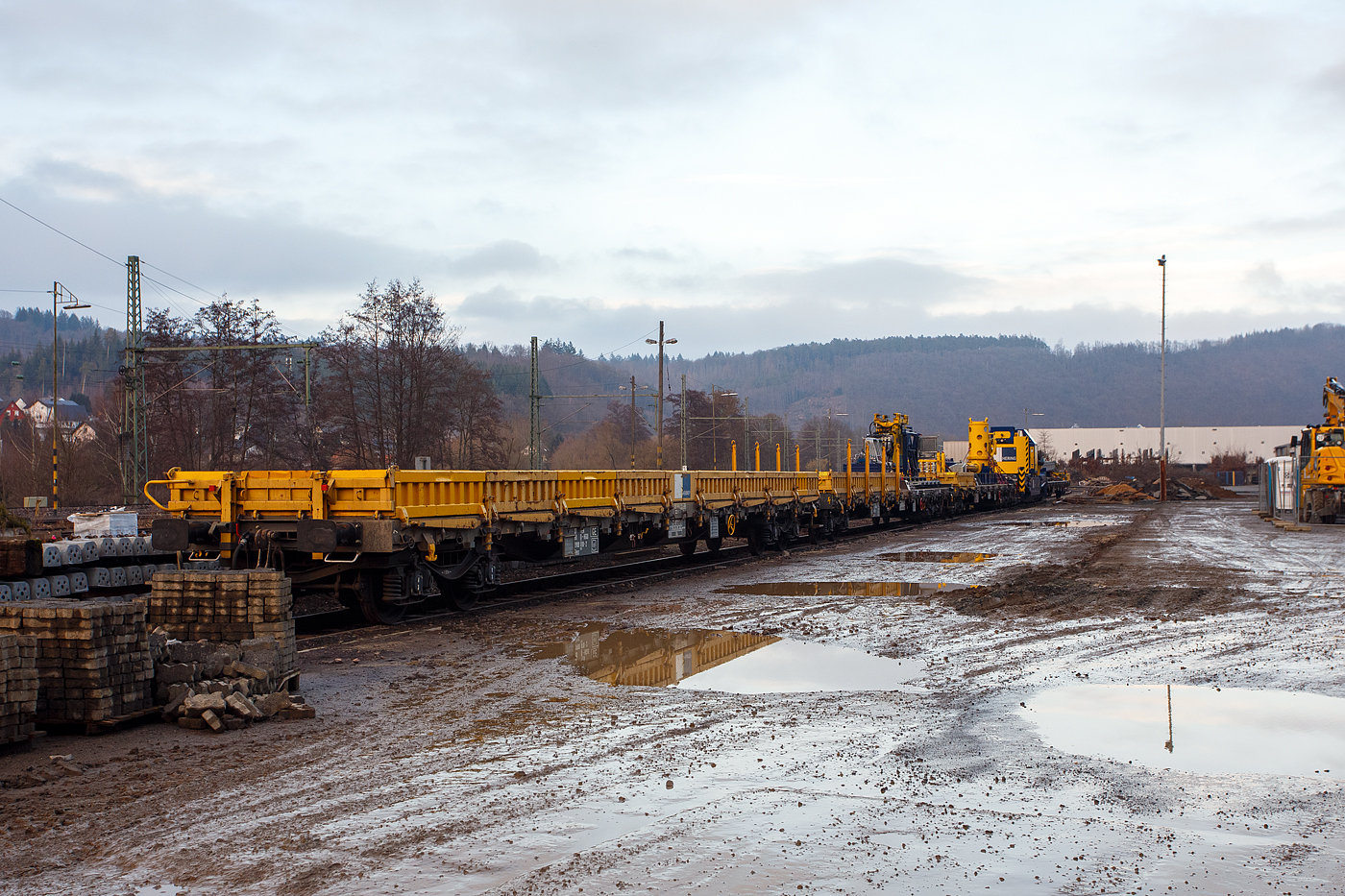 Kippwagen MK 45 DH „LW-Kipper“, 37 80 3832 010-7 RIV D-KAF, der Gattung Rlps, der KAF Falkenhahn Bau AG, Kreuztal (ehemaliger Wagen der Leonhard Weiss), am 14 März 2025 eingereiht im Zugverband bei einer Zugdurchfahrt im Bahnhof Kirchen/Sieg.