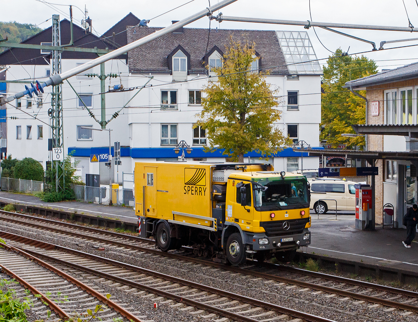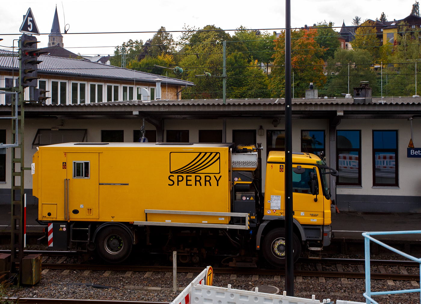 Die Goldschmidt SRS (Smart Rail Solutions) präsentierte auf der 29. Internationale Ausstellung Fahrwegtechnik 2025 (iaf) in Münster (hier am 20 Mai 2025) das bereit im April 2024 an die SPITZKE SE (Großbeeren) ausgelieferte Zweiwege-Oberleitungsmontagefahrzeug OMF vom Typ LRB26 TC 10-1T2 TS mit Trommelbock, für die Fahrleitungsmontage – Oberleitung. Das Fahrzeug ist als Gleisfahrbare Baumaschine Registrier-Nr. G 9931 011 eingestellt. Das Basisfahrzeug/Fahrgestell ist ein Volvo FM 430 Euro 6 (6x2).