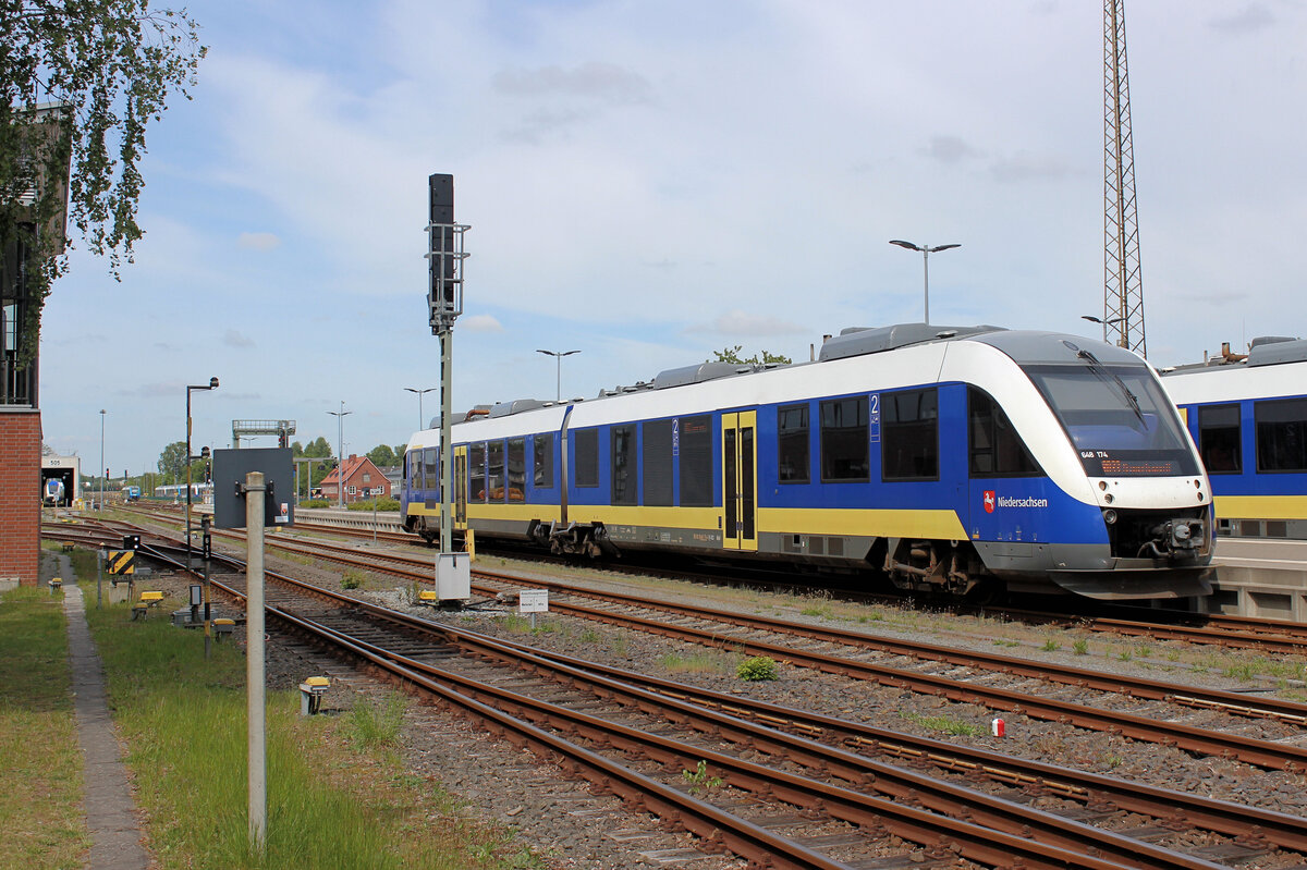 Am 26.04.2015 steht der Alstom Coradia Typ LINT 41 (VT 234) der BRB am Bahnhof Dasing und wartet auf Weiterfahrt in Richtung Ingolstadt.