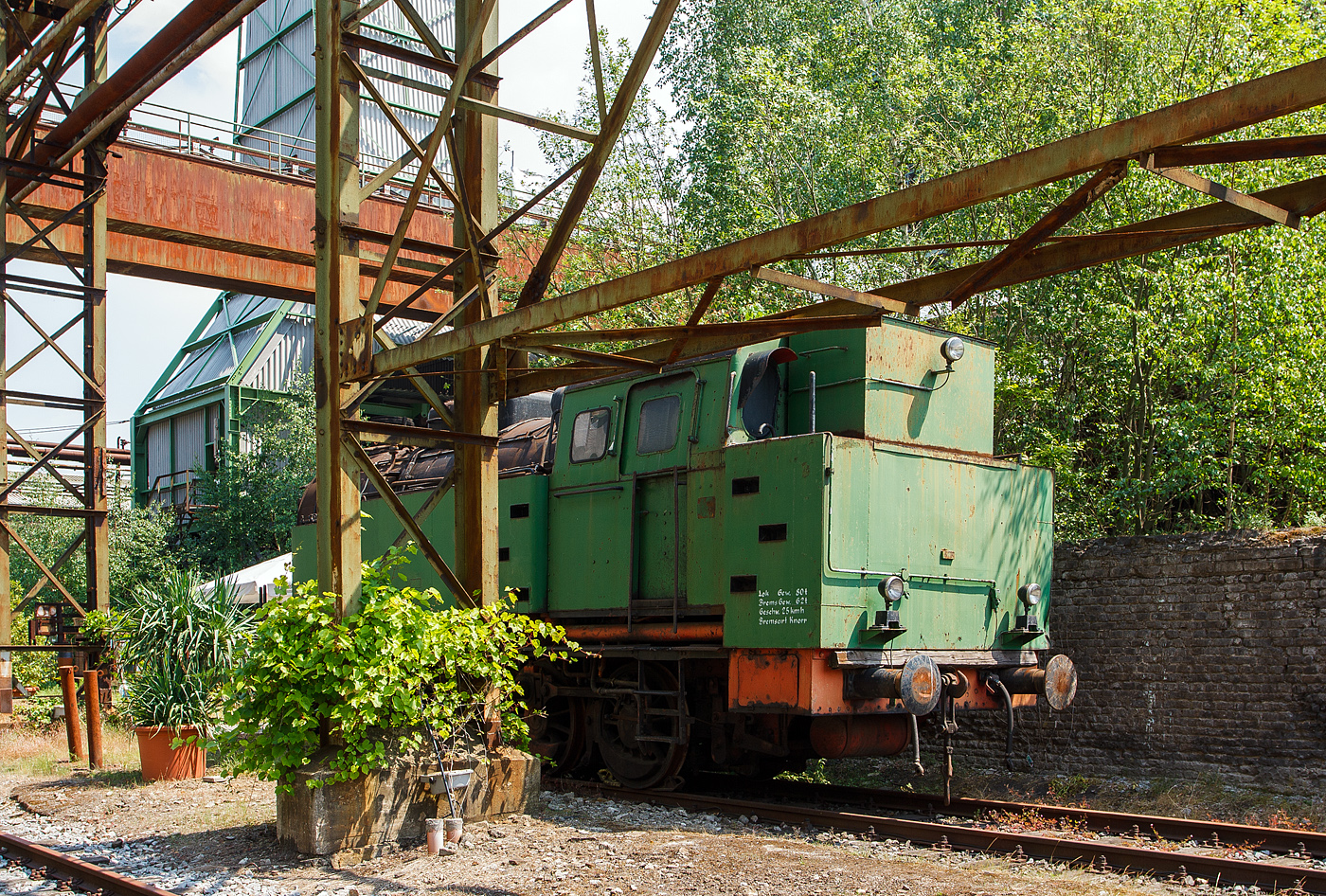 Ex Lok EBV 12 (Eschweiler Bergwerksverein, Grube Anna, Alsdorf "ANNA Nr.12" ) am 05.06.2011 im LWL-Industriemuseum Henrichshütte in Hattingen. Die Lok eine Krupp Bergbau, Bauart Dh2t, wurde 1961 unter der Fabrik-Nr. 4248, für Steinkohlenbergwerk Westfalen, Ahlen i.W. "10" gebaut.
