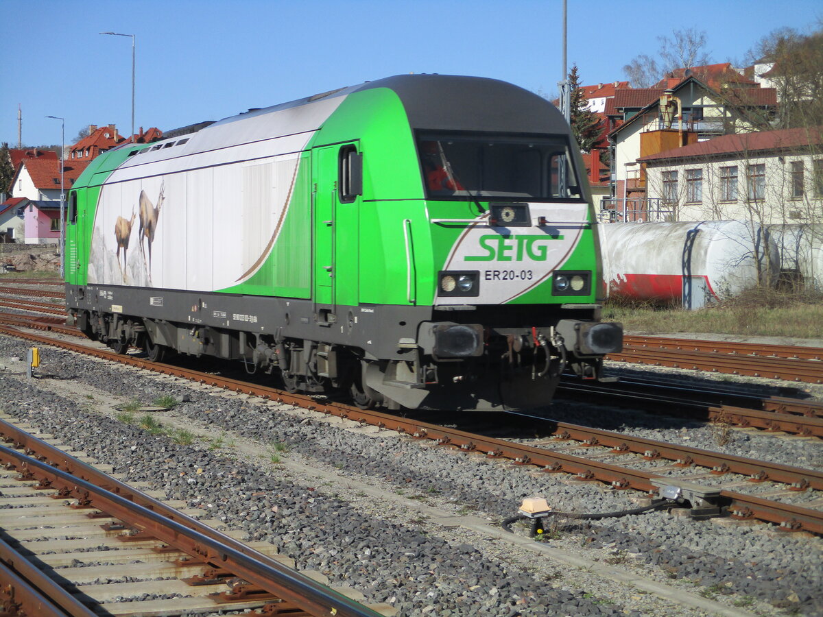 223 144-7 IntEgro Verkehr GmbH mit einem Holzzug in Stendal und fuhr weiter in Richtung Niedergörne. 19.03.2015