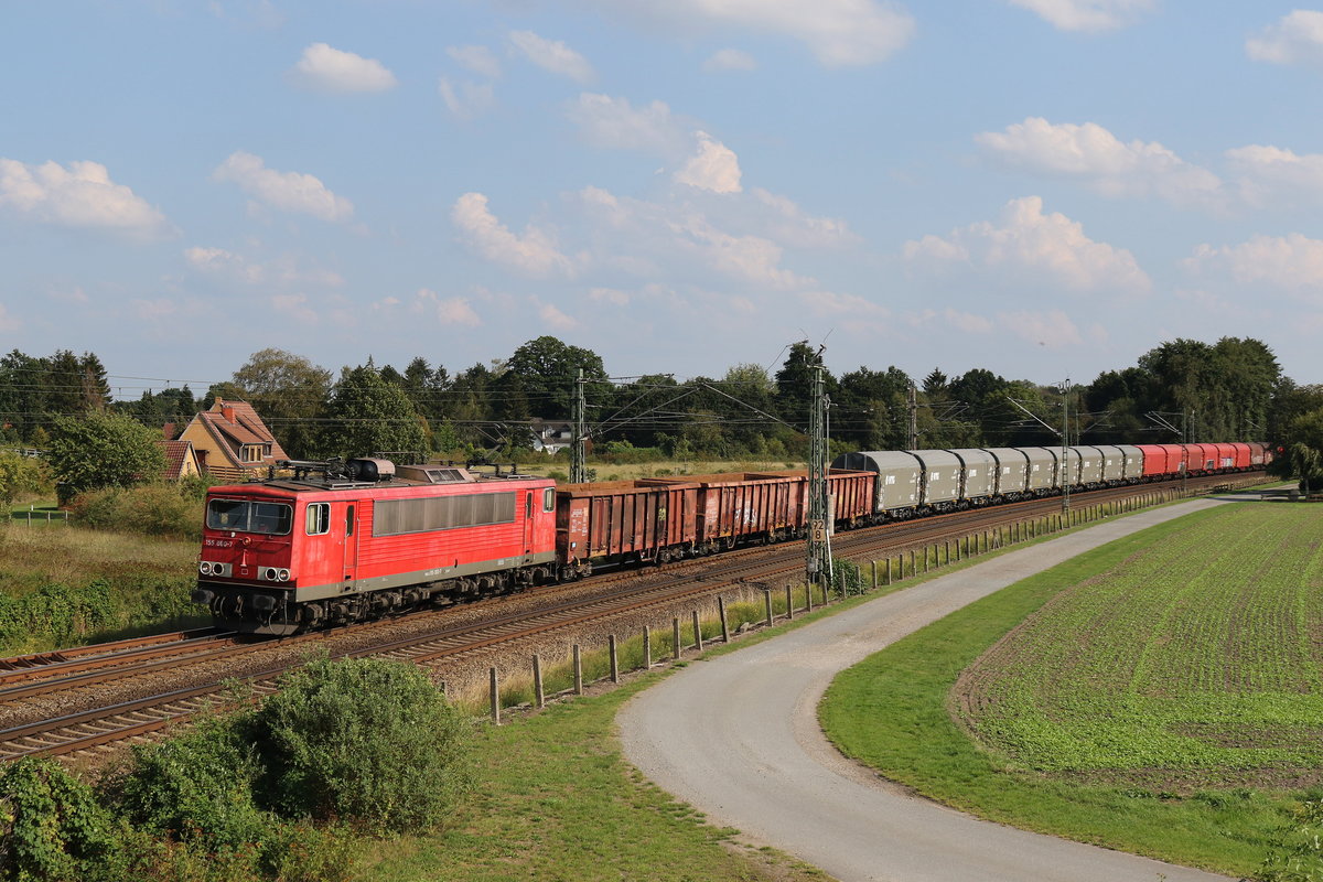 155 059 von "PRESS" war am 12. Oktober 2022 mit einem Kesselwagenzug bei Himmelstadt in Richtung Würzburg unterwegs.