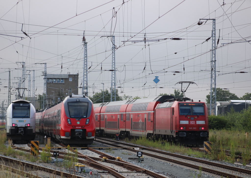 101 064-4 und 182 004 am 07.06.2019 im Rostocker Hbf