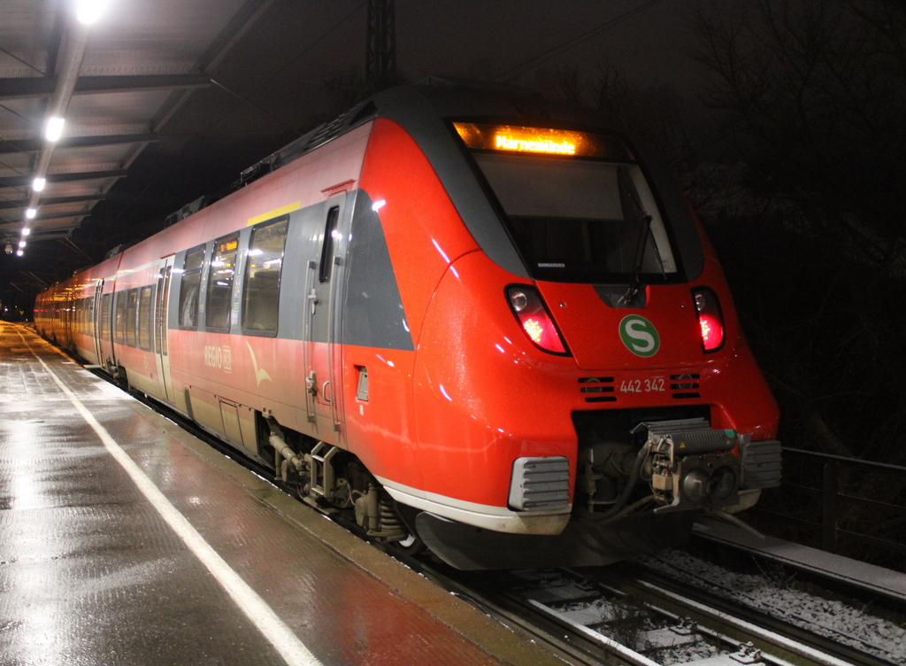 445 007+Twindexxwagen DBpza 782.1+445 009 als RE 4360 von Elsterwerda nach Rostock Hbf kurz nach der Ankunft im Rostocker Hbf.21.12.2017