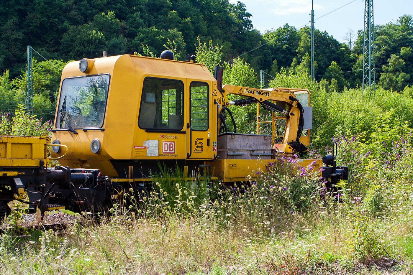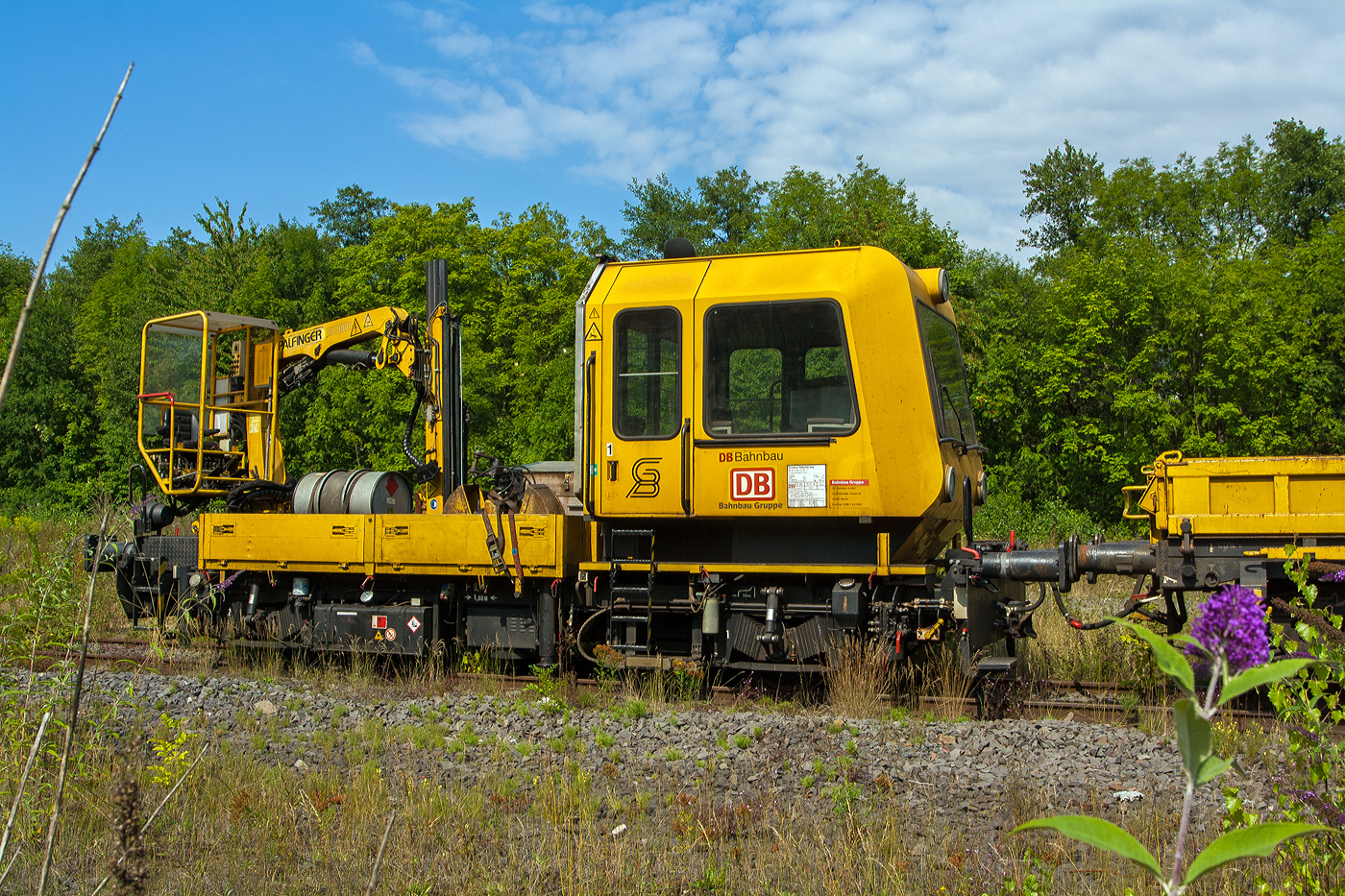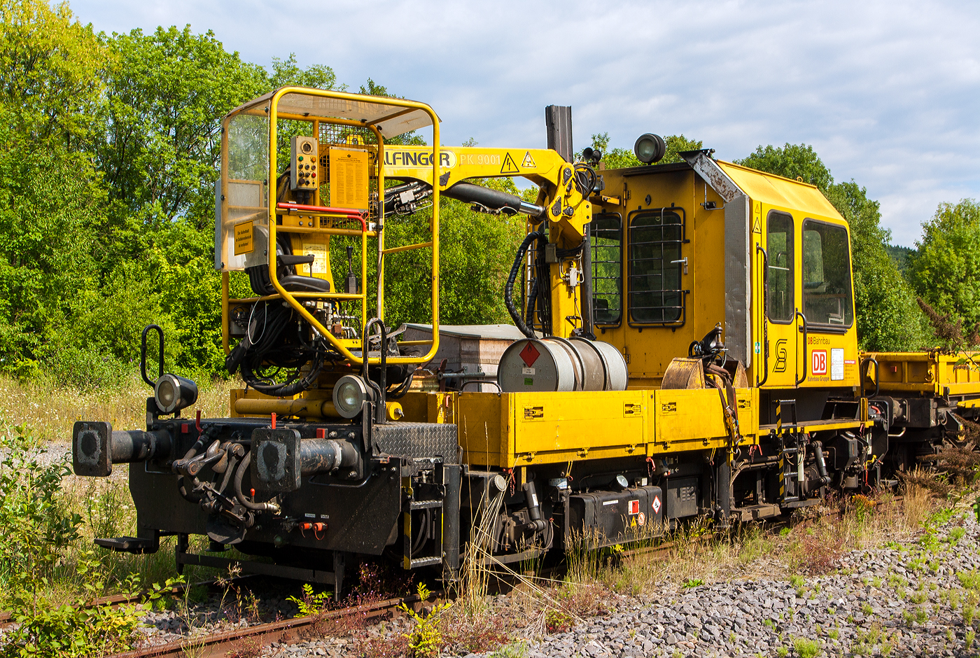 Plasser & Theurer Universalschotterplaniermaschine USP 2000 SWS (Schweres Nebenfahrzeug Nr. 97 16 32 004 17-4) SSP 682 „Hot Sweeper“ der DB Bahnbau Gruppe, am 14.06.2017 in Betzdorf/Sieg abgestellt. Ehemals gehörte die Maschine der DB Netz AG, Maschinenpool (Netz Instandhaltung).