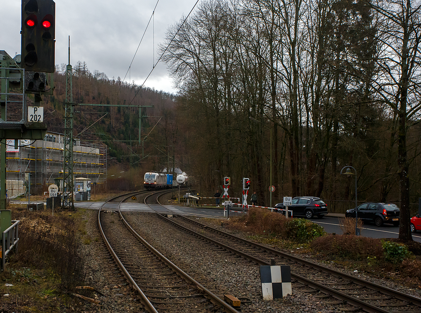 Die an die TXL - TX Logistik AG (Troisdorf) vermietete Railpool 186 284-6 (91 80 6186 284-6 D-Rpool), fährt am 05 Juli 2025 mit einem Magetra-KLV-Zug durch Kirchen an der Sieg in Richtung Köln