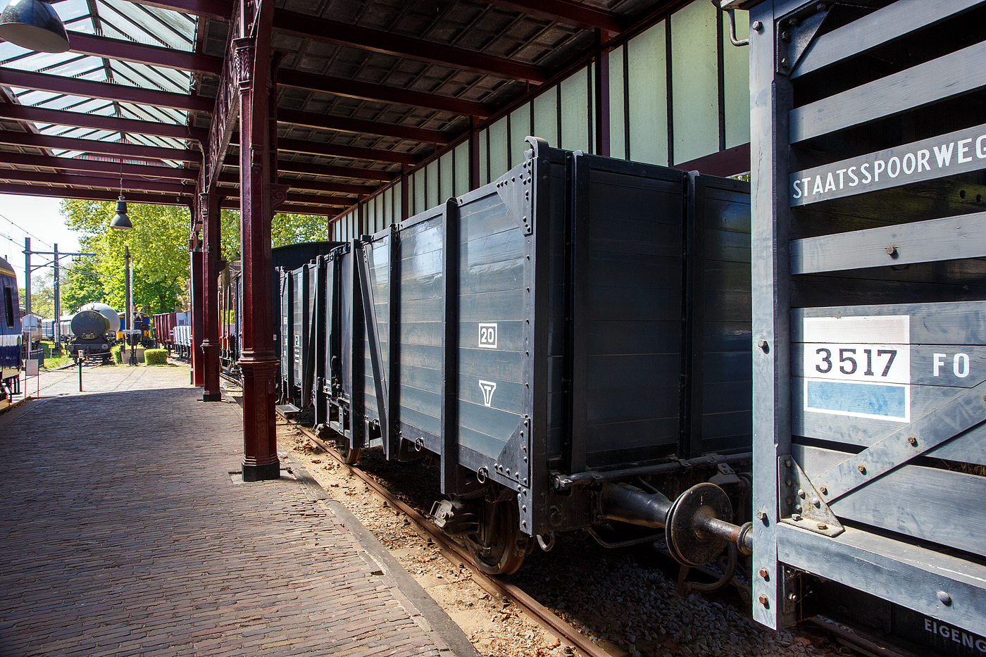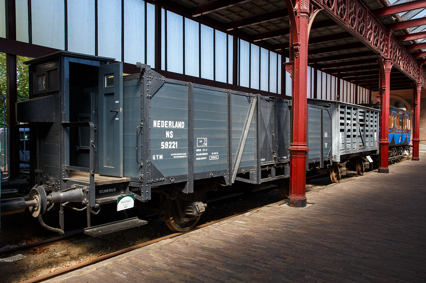 Der zweiachsige offene Pferdebahn-Güterwagen NTM G 1 und der einachsige offene Pferdebahn-Gepäckwagen NTM Dk 2 am 24 Juni 2025 im Het Spoorwegmuseum (bis 2005 NSM - Nederlands Spoorwegmuseum / Niederländischen Eisenbahnmuseum) in Utrecht im ehemaligen Bahnhof Maliebaan. Ein Eisenbahnmuseum das zum Verweilen einlädt. Übrigens Het vor Spoorwegmuseum heißt einfach „Das“, so heißt übersetzt das Museum einfach „Das Eisenbahnmuseum“.