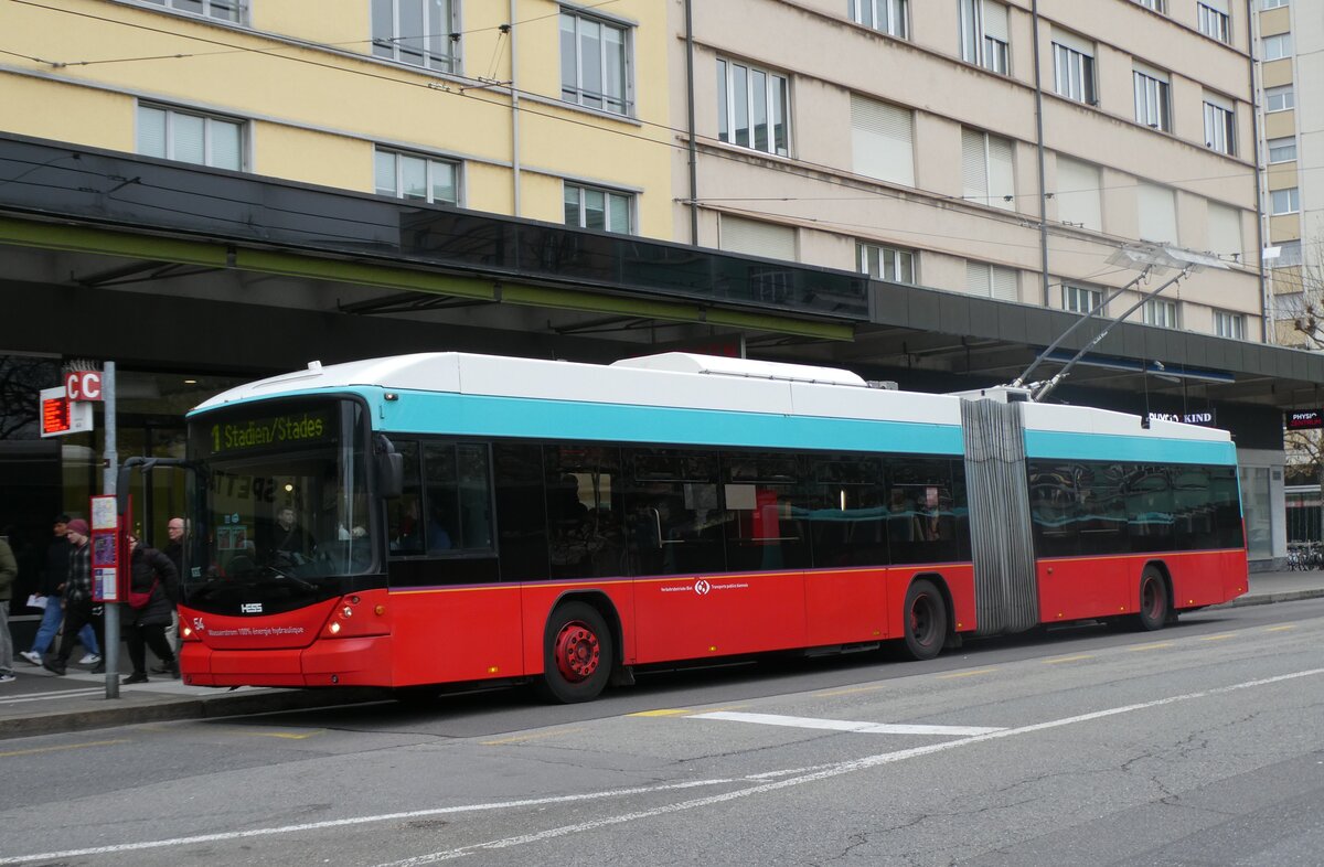 (278'505) - VB Biel - Nr. 58 - Hess/Hess Gelenktrolleybus am 4. August 2025 beim Bahnhof Biel
