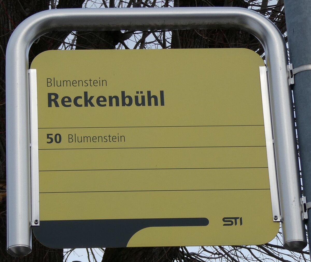(266'949) - STI-Haltestellenschild - Uebeschi, Secki - am 13. September 2024 in Blumenstein, Tannenbühl