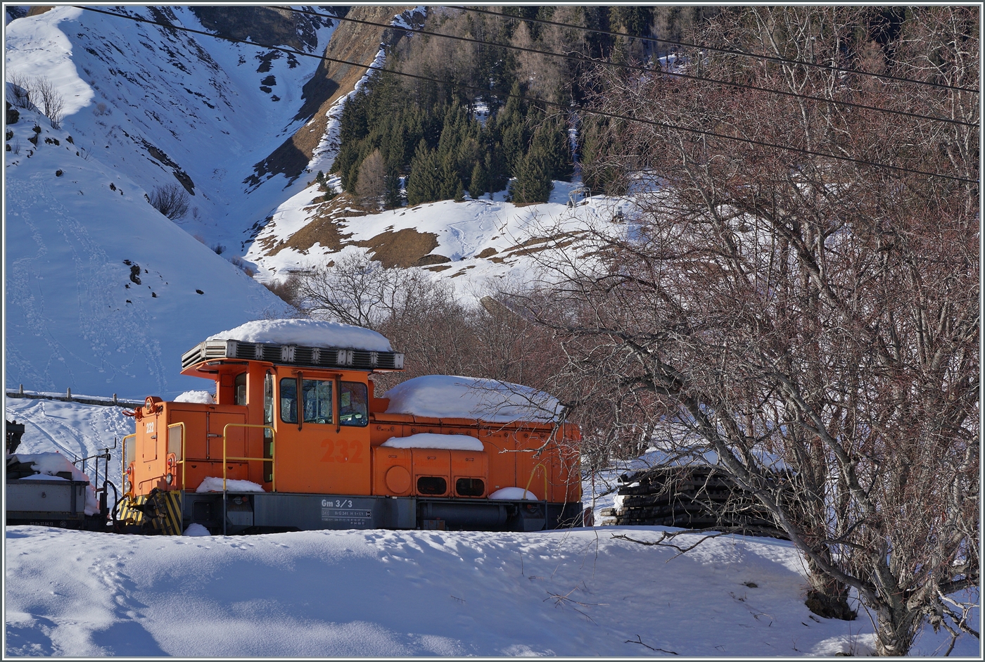 Danach galt es, Erfahrungen im Schneeräumeinsatz im Bahnhof Realp mit der Xrotm 9216 "Schleuderina" zu sammeln. Die Gm 231 kommt außerdem für schwere Rangiermanöver zum Einsatz. Inzwischen hatten auch die Arbeiten zur Wiederinbetriebnahme der Gm 233 begonnen. Mit zwei betriebsbereiten Loks wird die Dieselcrew die Traktionsbedürfnisse auf den Adhäsionsabschnitten ohne Zahnstange flexibel abdecken können. Die Gm 232 bleibt bis auf weiteres außer Betrieb.