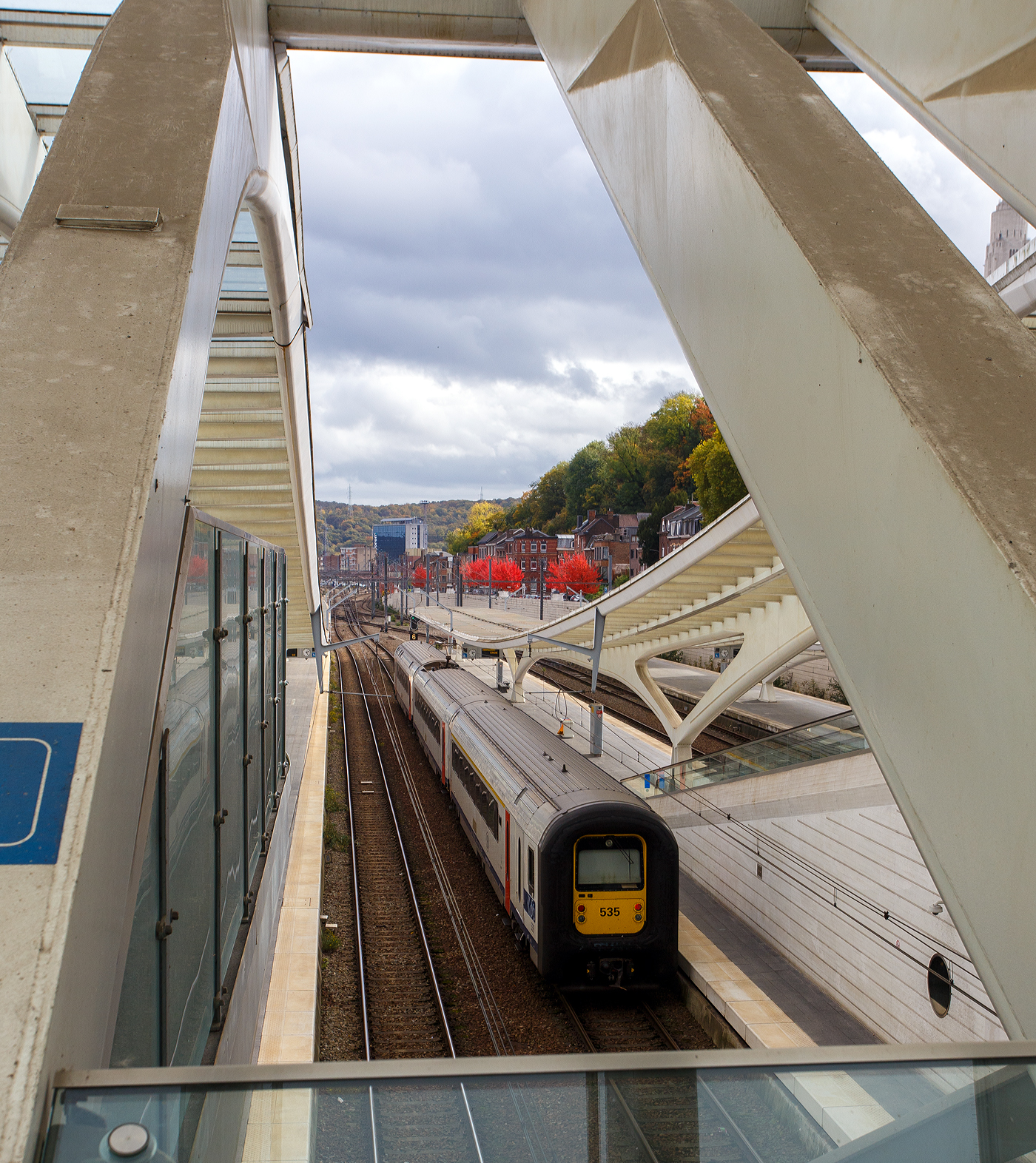 Die Gumminase SNCB/NMBS Triebzug AM 96 - 535 (AM = Automotrice), ein 3 kV Einsystemtriebzug mit GTO-Traktionsstromrichter verlässt am 21 Oktober 2025 den Bahnhof Liège Guillemins (Lüttich-Guillemins). Er fährt als S-Zug Lüttich (Train S Liège) der Linie S 42, die Verbindung (Liers – Herstal – Liège-Saint-Lambert – Liège-Guillemins –Seraing – Flémalle-Haute). Armin Schwarz