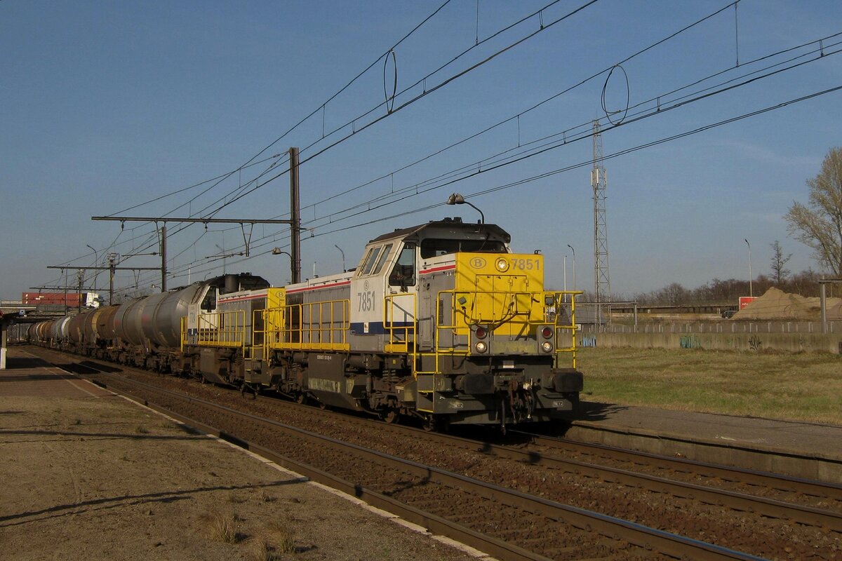 Lineas 7718 steht mit ein liegengebliebener Schnelzug in Roosendaal am 17 März 2025.