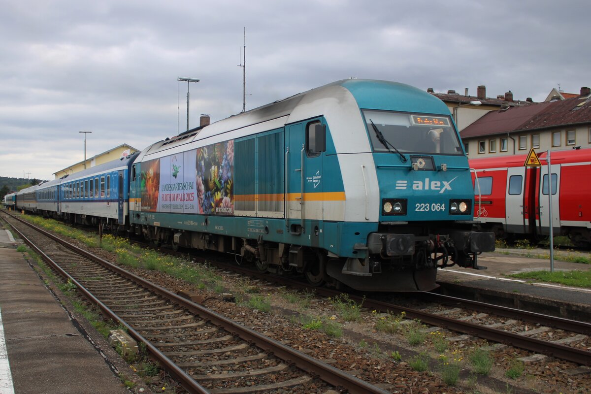 ALEX 223 064 wirbt für der Landesgartenschau in Furth und steht am 24 September 2025 in Schwandorf.