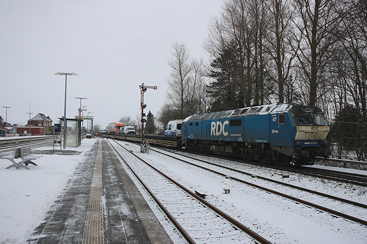 RDC DE 2700-07 schiebt, schmüztig und stark, ein RDC Autozug aus Niebüll nach Westerland (Sylt) am 16 Februar 2026. Schiebediensten an Syltshuttles und RDC Autozüge sind jedoch etwas rares... Leon Schrijvers