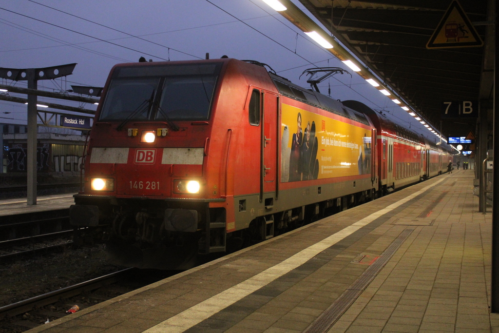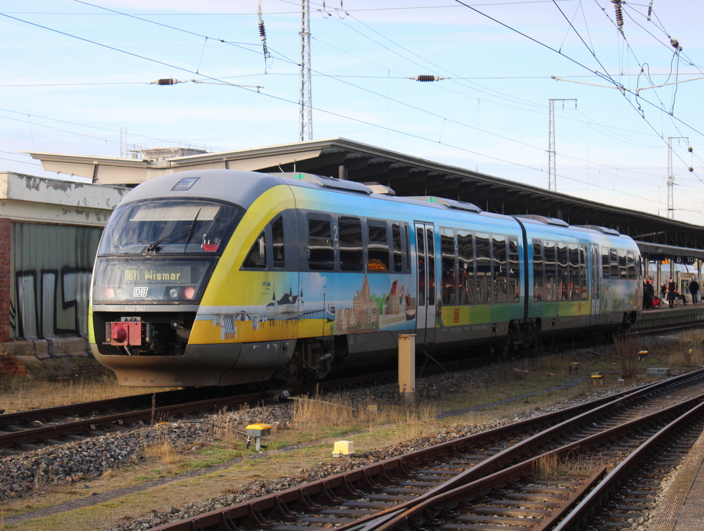 445 007-1+Twindexxwagen DBpza 782.1+445 009-7 als RE 4360 von Elsterwerda nach Rostock Hbf kurz nach der Ankunft im Rostocker Hbf.12.01.2018