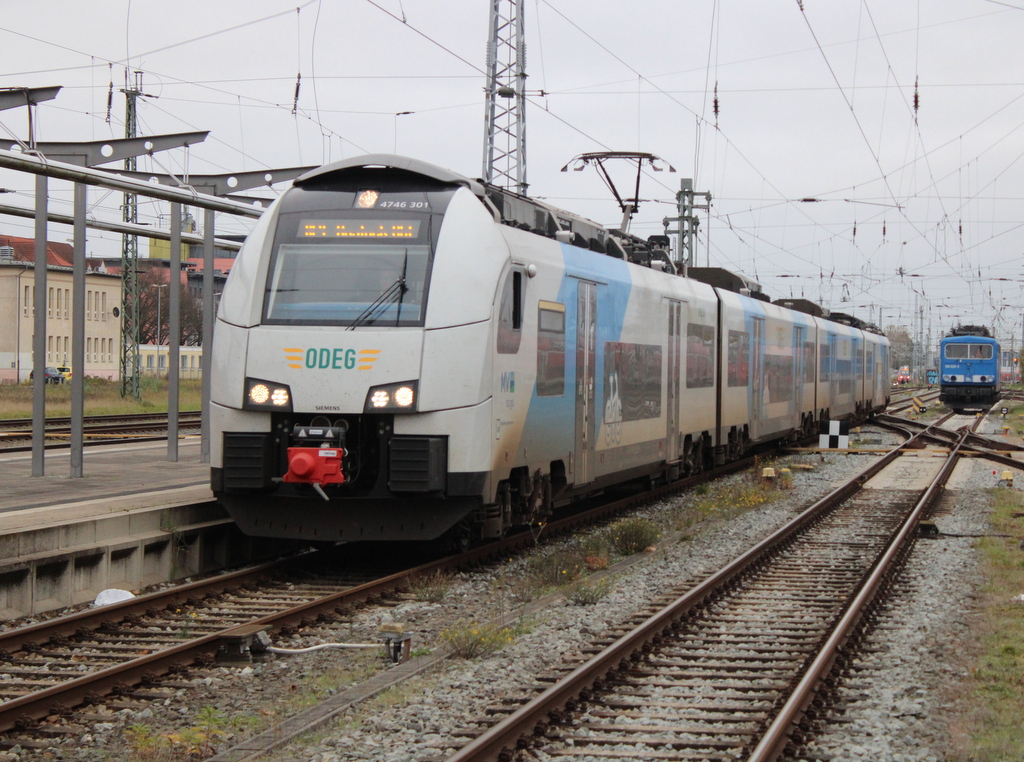 4746 307 als RE9 von Ostseebad Binz nach Rostock Hbf bei der Einfahrt im Rostocker Hbf