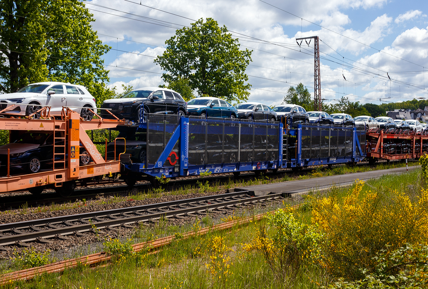 Nach der detaillierten Wagenanschrift Laaeffrs 560.4 (25 80 4382 302-4Ten D-ATG) nun ein Bild was man ich darunter vorstellen kann. Der Autotransportwagen ist auf einer Testfahrt in Lausanne