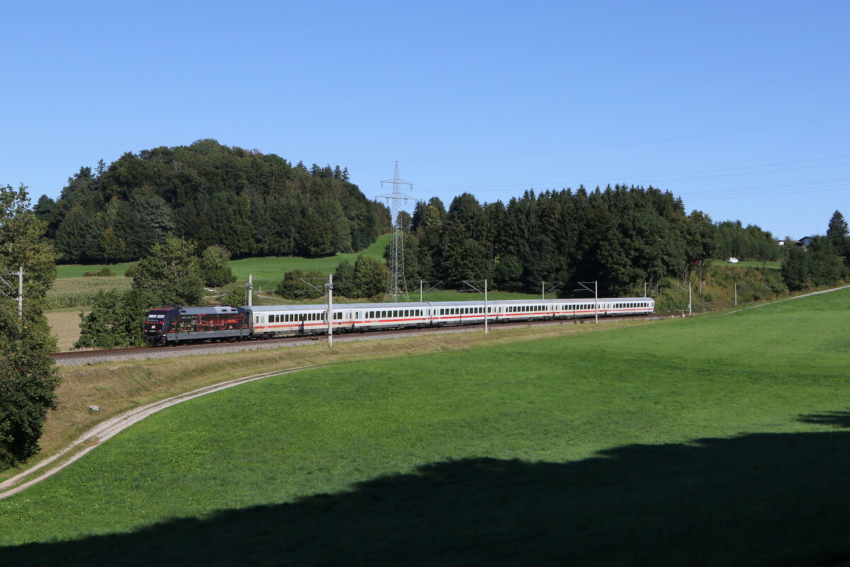 Am 23. August 2011 steht der "IC Königssee" mit der Lok ES 64 U2 - 072 im Augsburger Bahnhof.
