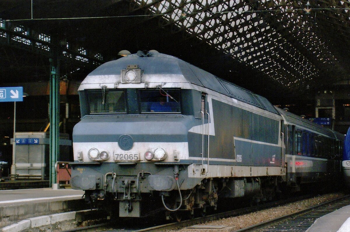 CC 72084 schleppt ein Leerschötterzug durch Longueville am Abend von 18 September 2011.