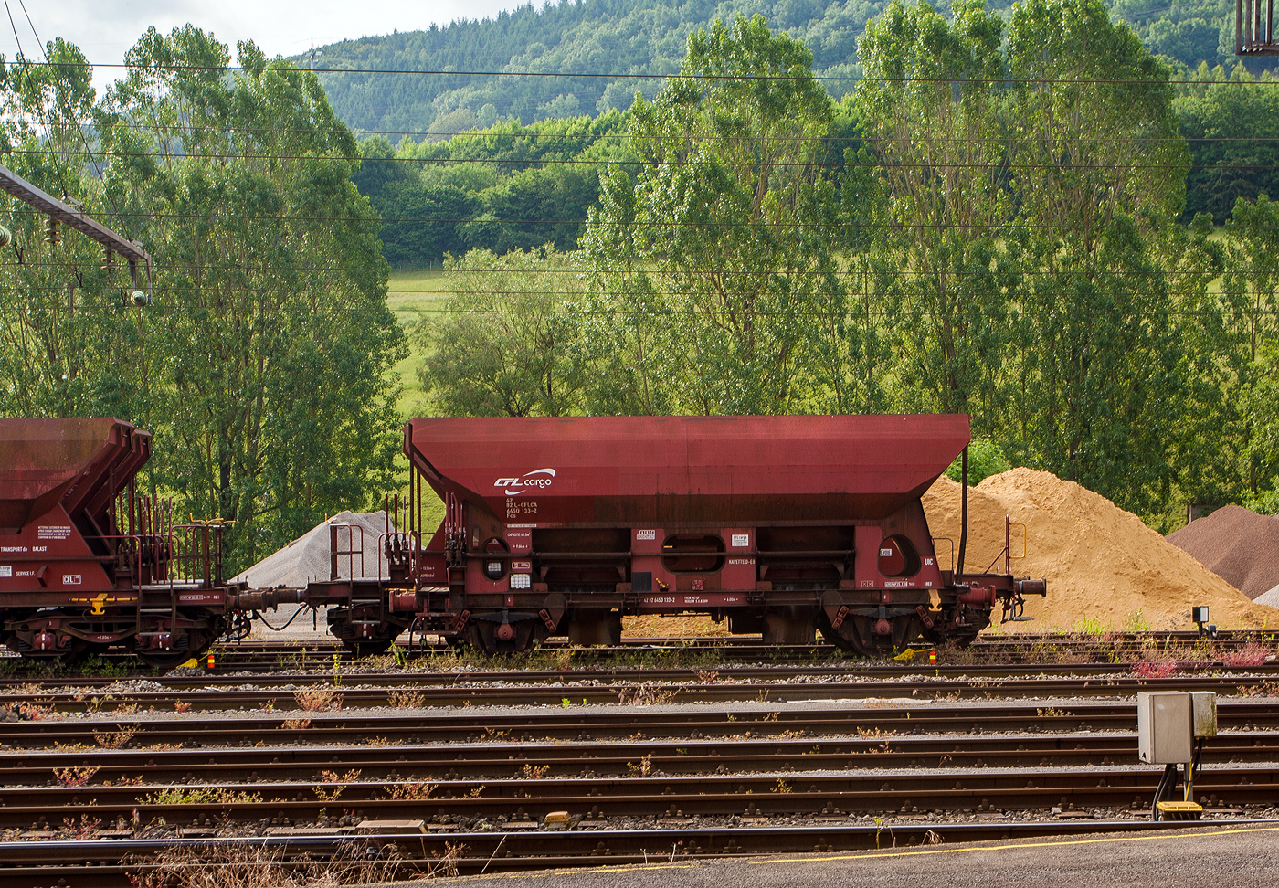 Zweiachsiger offener Schüttgutwagen mit dosierbarer Schwerkraftentladung, 42 82 6450 133-2 L-CFLCA, Gattung Fcs, der CFL Cargo S.A. abgestellt am 15 Juni 2013 beim Bahnhof Ettelbruck.