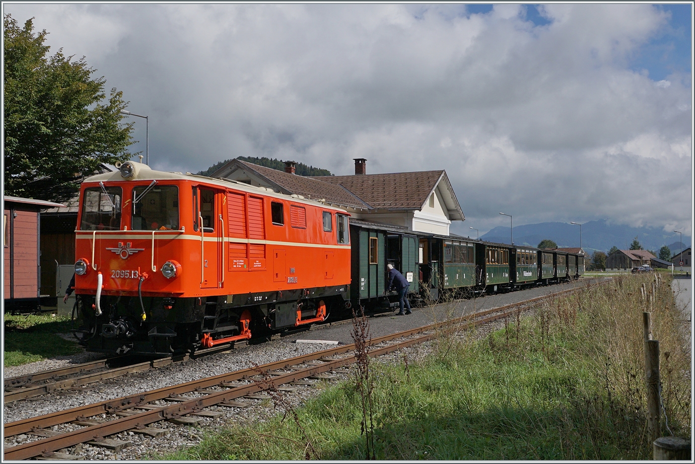 Die kleine BWB Uh 102 rangiert in Schwarzenberg Bf. "Stürzen" nennt man dies wenn ich mich nicht irre in Österreich.