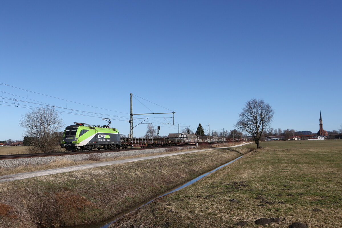 1016 001 mit einem "Mischer am 16. Februar 2019 bei Übersee am Chiemsee.