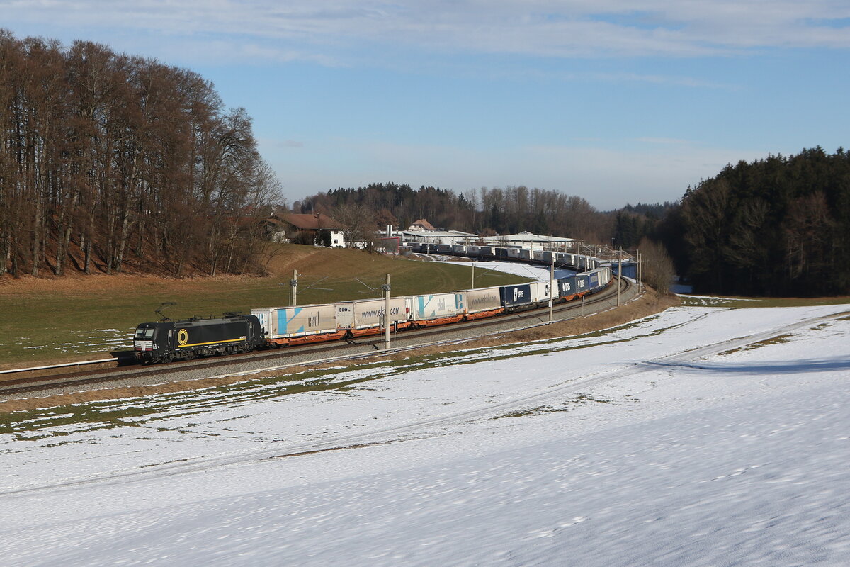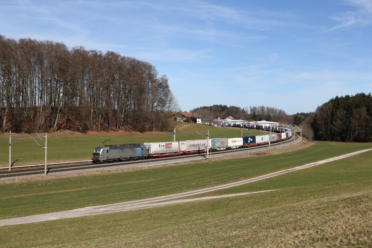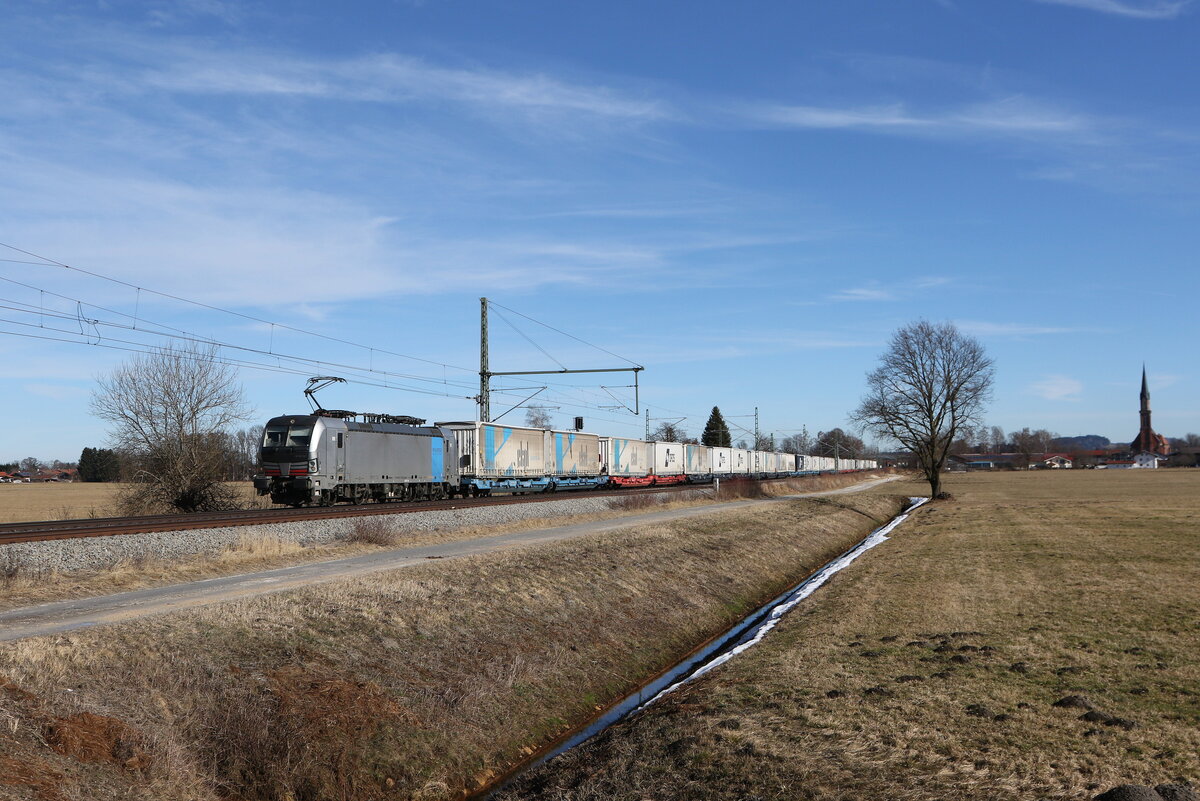 1116 141 war mit dem "Ekol" in Richtung Salzburg unterwegs. Aufgenommen am 7. Mai 2019 kurz nach Prien am Chiemsee.