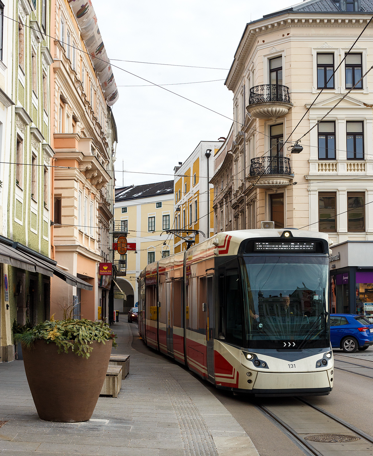 Der fünfteilige Meterspur-Straßenbahn-Triebwagen StH ET 126 "Vöcklamarkt", ein fünfteiliger STADLER (ex Vossloh) Zweirichtungs-Multigelenk-Stadtbahnwagen in Niederflur-Bauweise vom Typ Tramlink V3 der neuesten Generation (Tramlink 2.0), der Stern & Hafferl Verkehrsgesellschaft m.b.H., erreicht am 14 Januar 2025 als Linie 180 von Vöcklamarkt kommend den Ziel- und Endbahnhof Attersee am Attersee.