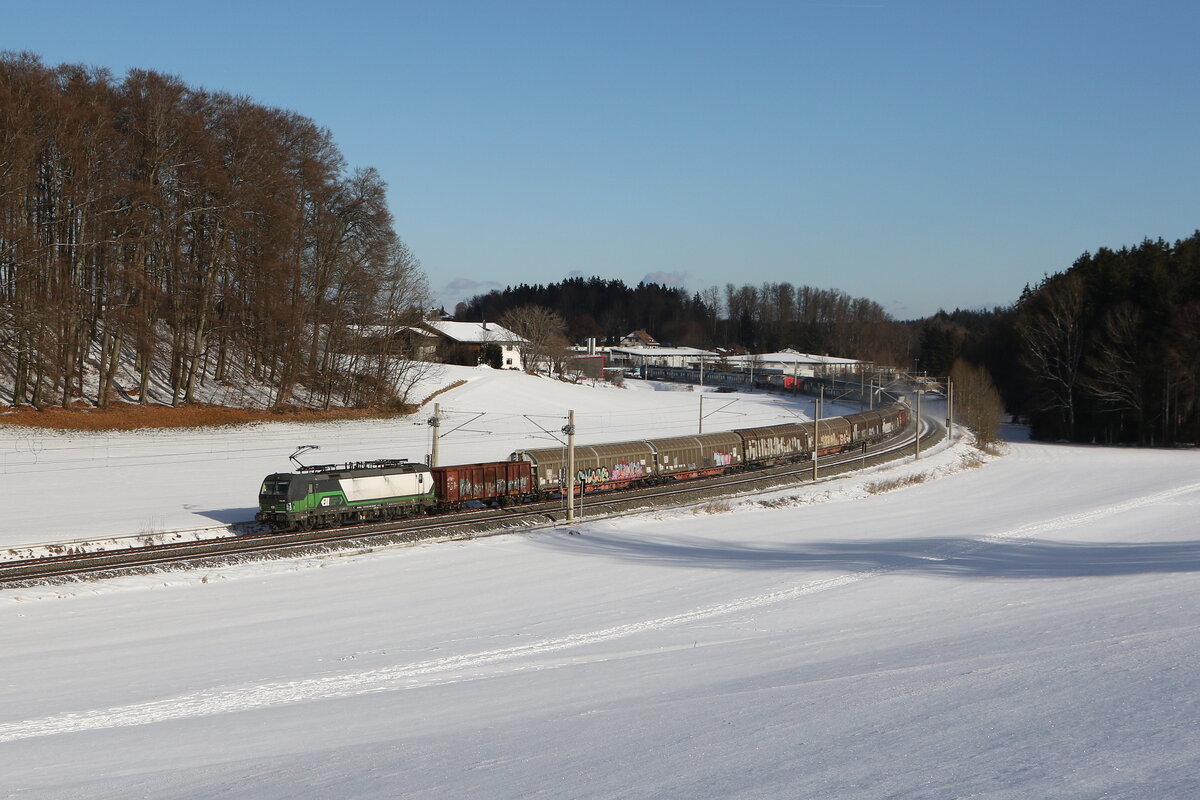 6193 932 mit einem Kesselwagenzug aus München kommend am 26. Februar 2026 bei Axdorf.