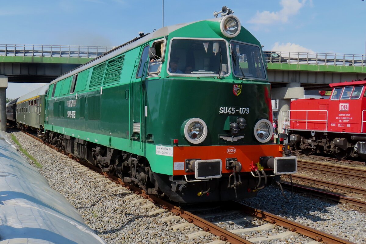 Am 4 Mai 2024 treft ein Sonderzug mit SU45-079 in Wolsztyn ein nach den Dampflokparade.