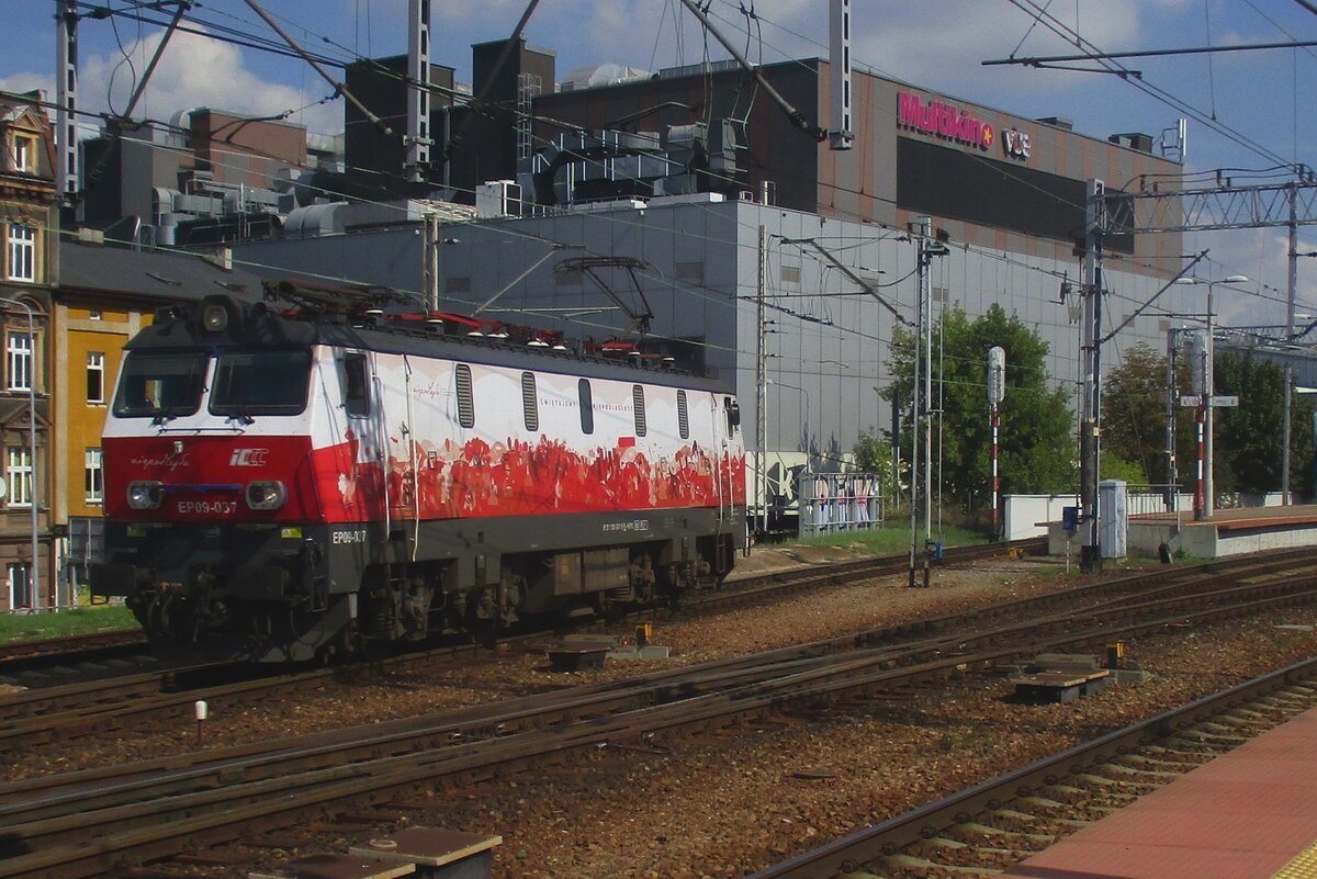 Am 1 Mai 2016 steht PKPIC EP09-031 in Poznan GLowny -denn noch mit die beide verschiedene Stromabnehmer.