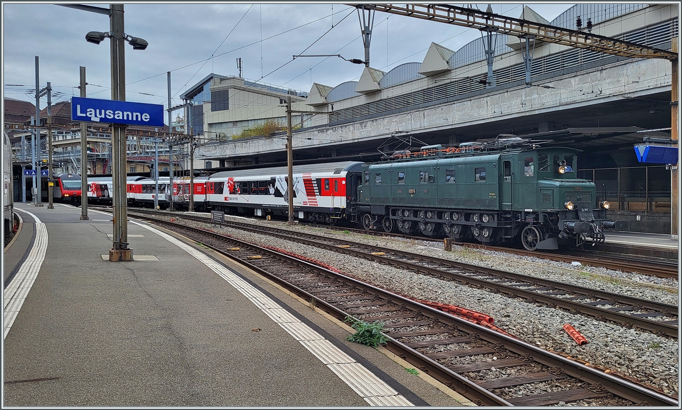Bei all den schönen Dingen bei der Eisenbahn gehört die Ae 4/7 ohne Frage auch dazu. Die Ae 4/7 10997 (Swisstrain) wartet mit ihrem edlen St.Valentin Extrazug in Lausanne auf die baldige Abfahrt.