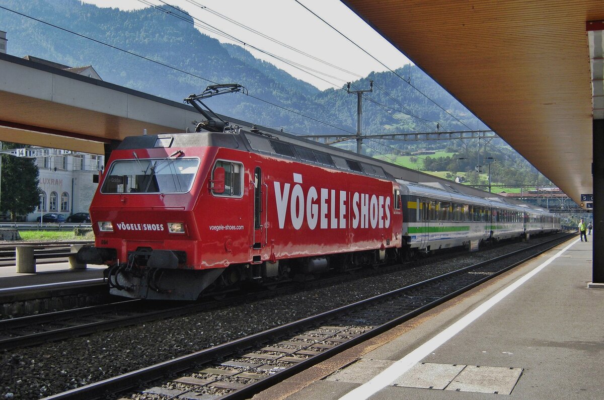 Der 2-teilig NPZ (Neuer Pendelzug) der SOB (Schweizerische Südostbahn AG), bestehend aus dem Triebwagen RBDe 566 075-8 (RBDe 94 85 7 566 075-8 CH-SOB) und dem Steuerwagen ABt 175 (ABt 50 85 80-35 175-9 CH SOB), ist am 23.06.2016 beim Bahnhof Arth-Goldau abgestellt.