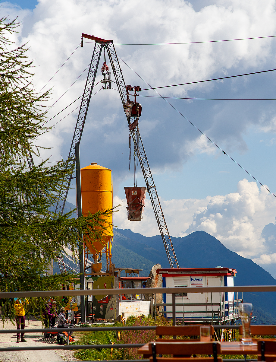 Die hier verwendete Bahn ist vom italienischen Seilbringungs-Spezialisten Seik (Truden). Der verwendete Wagen ist ein Seilkran vom Typ SFM 30/60. In dem Seilkran befindet sich ein Verbrennungsmotor der das Hubwerk antreibt (dieser läuft nur bei der Hubbewegen) um wie hier den Betonkübel anzuheben und später wieder abzusenken. Die Hubkraft beträgt im Einzelzug 3t oder wie hier im Doppelzug mit dem Waagbalken 6t. Das Gesamtgewicht beträgt ca. 1t. Die Winde für das Zugseil kann nach Belieben (Bergseite – Talseite) platziert werden.