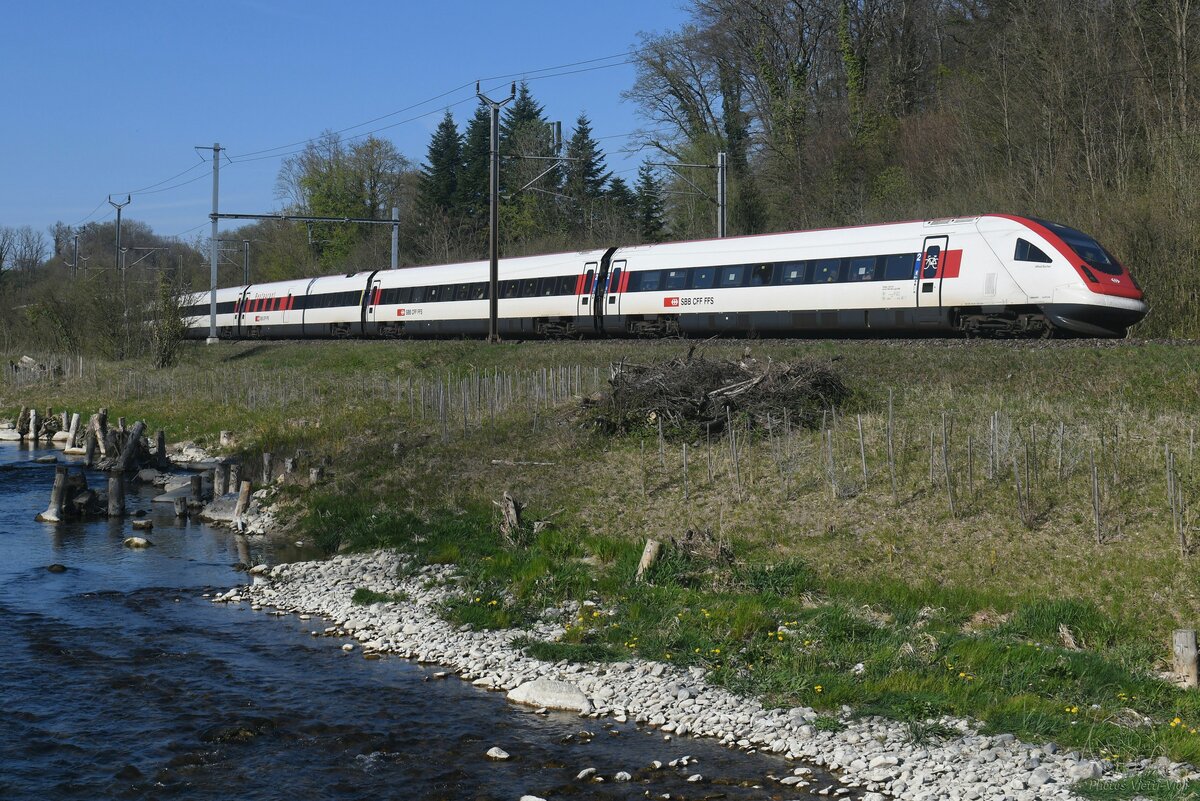 Ein ICN RABDe 500 ist kurz nach Göschenen auf dem Weg in Richtung Erstfeld. Infolge geplanter Unterhalts Arbeiten im GBT (Gotthard Basis Tunnel) wurden während zwei Wochen MO-FR im Jan. 2025 etliche Reisezüge via Göschenen umgeleitet. Ähnliche Umleitungen sind auch für 2026 geplant.