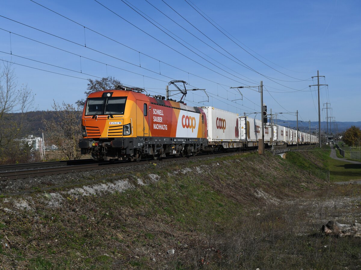 RailCare 476 452 zieht der COOP Guterzug durch Pratteln gen Westen am 13 Februar 2024.