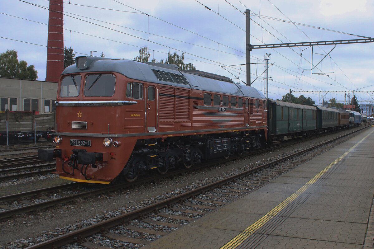 Am Freitag 26 September -ein Tag vor das STEAM56 Spektakel richtig entbrannte- rangiert KDS 781 592 einige MUseumswagen ins Bw von Benesov u Prahy und wird von Dützende Eisenbahnfans gerne beobachtet. Der Freitag vor das STEAM5x Wochenende treffen die eingeladene, teilnehmende Loks und ZÜge in Benesov u Prahy ein und müssen irgendwie ins Bw verschoben werden, was immer zum Fotochancen führt -so lange die Sonne nicht scheint, weil es dann Alles ins Gegenlich passiert.
