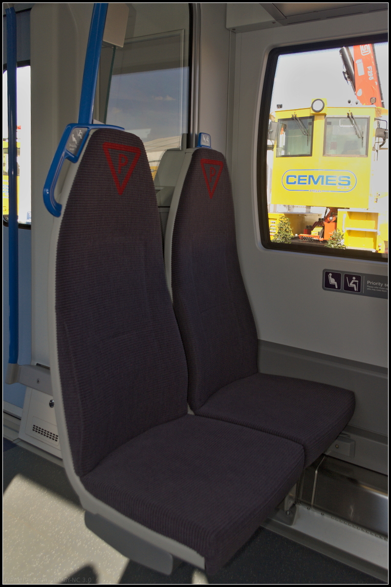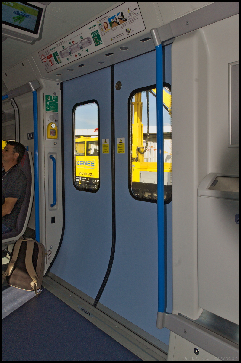 Der Innenraum des Desiro City (Class 717) für die Govia Thameslink Railway im Einsatz auf der Moorgate-Strecke. Ausgestellt war der Triebzug auf der InnoTrans 2018 in Berlin und konnte auf dem Freigelände besichtigt werden.